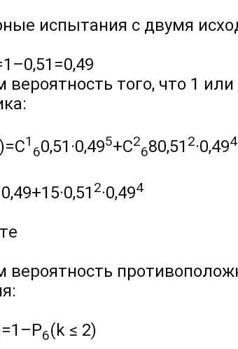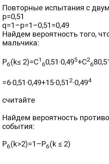 В семье 6 детей. Найти вероятность того, что среди этих детей 4 мальчика, если вероятность рождения девочки равна 0,51.