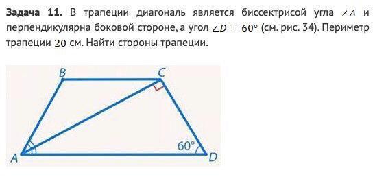 ∡BAD=30*2=60° ⇒ ABCD равнобедренная трапеция, AB=CD=х;