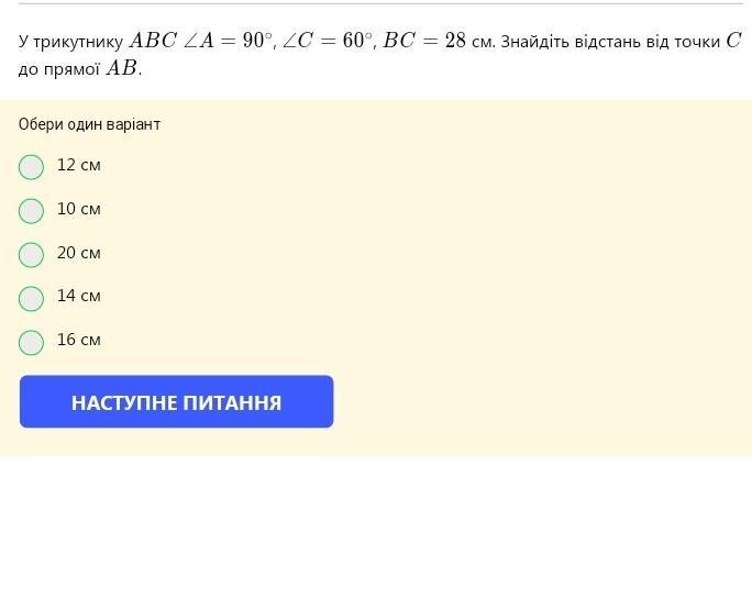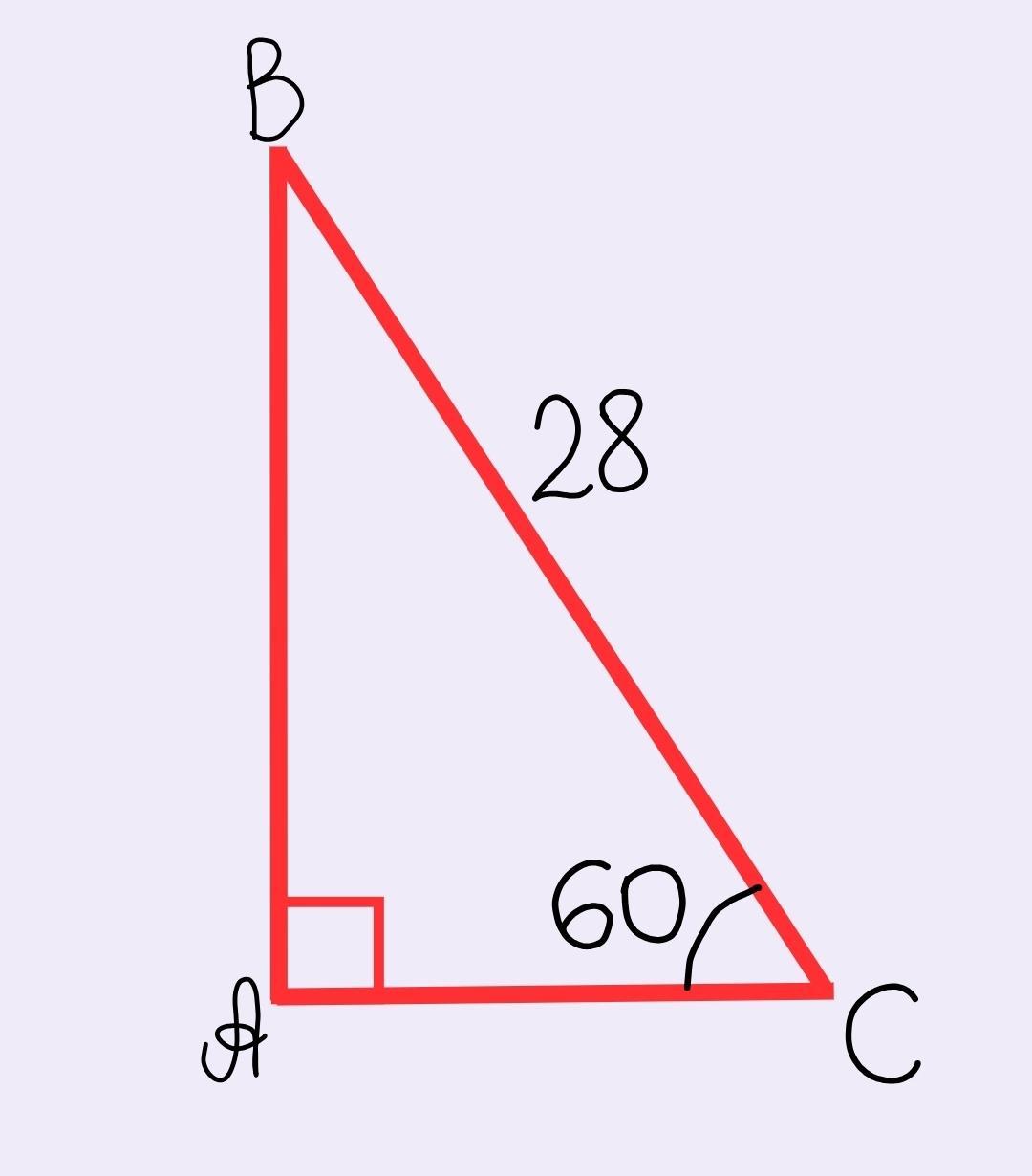 Катетер проти кута 30 дорівнює половині гіпотези 28:2=14