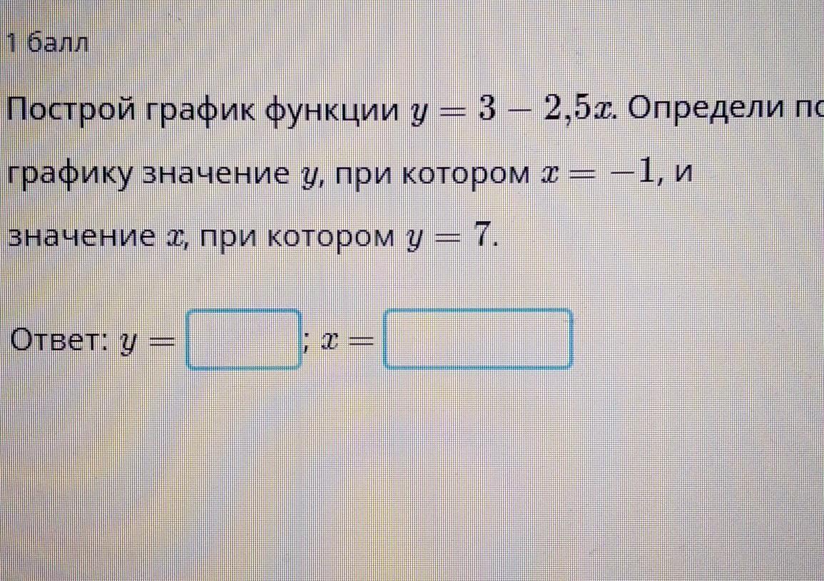 Объяснение: достаточно подставить в ур-ние нужные значения и решить, тогда можно будет сразу написать ответ, а потом быстро построить график (прикрепить вид готового графика не могу, т.к. под рукой нет листочка)