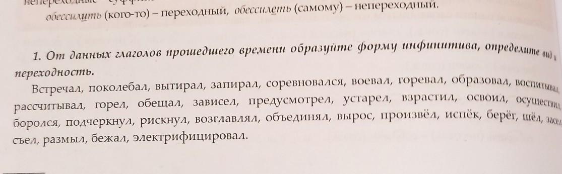 От данных глаголов прошедшего времени образуйте инфинитив Определите его вид и переходность