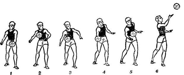 Амплитуда движений руки позволит регулировать дальность полета мяча. Если вы желаете направить мяч на трехметровую линию, то отведите руку на 90 градусов (перпендикулярно площадке).