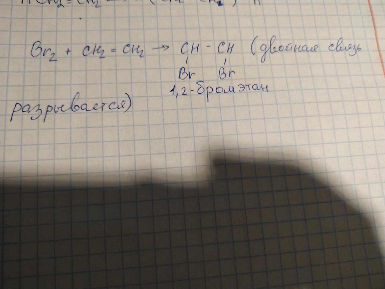 3. Составьте реакция присоединения брома к этилену, назовите полученные вещества. Что происходит с двойной связью в результате присоединения брома.