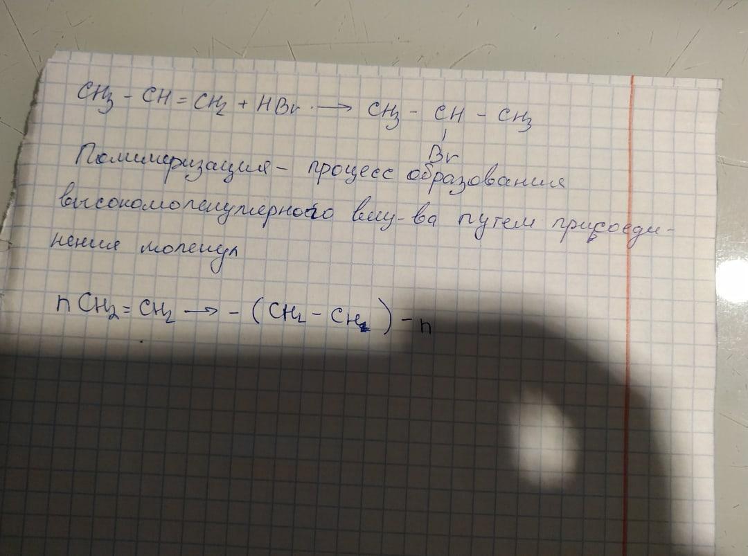 5. Составьте реакция присоединения бромоводорода к этилену (этену), назовите полученные вещества.