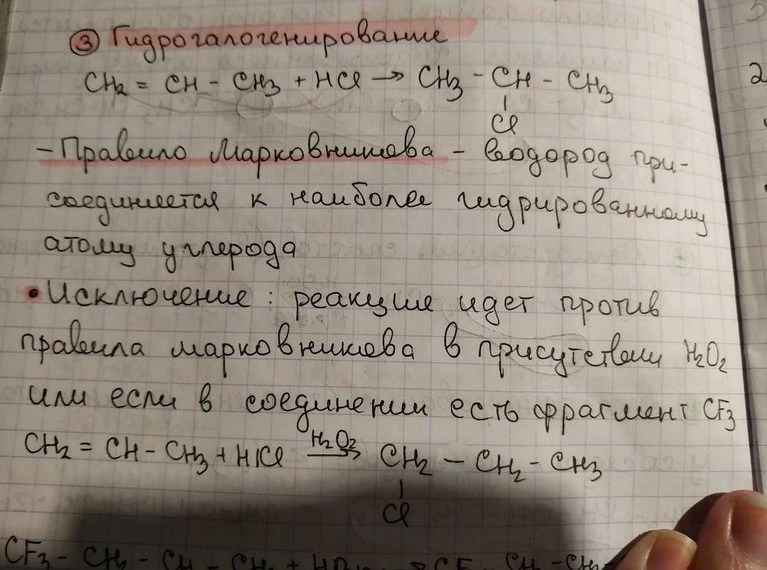 6. Составьте реакция присоединения бромоводорода к пропену, назовите полученные вещества. В чем суть правила Марковникова и когда оно применяется.