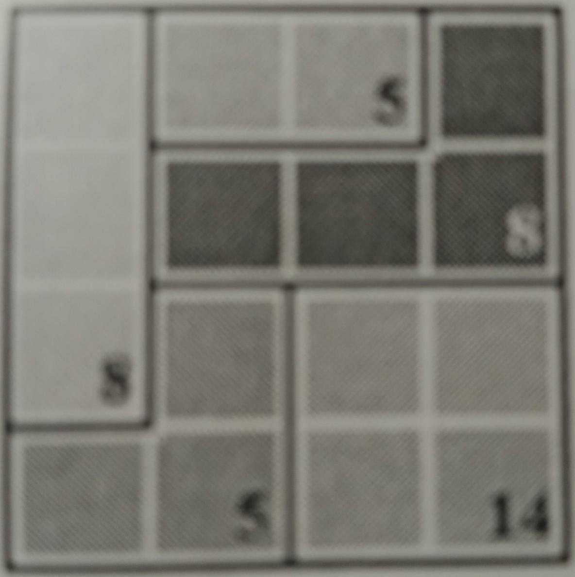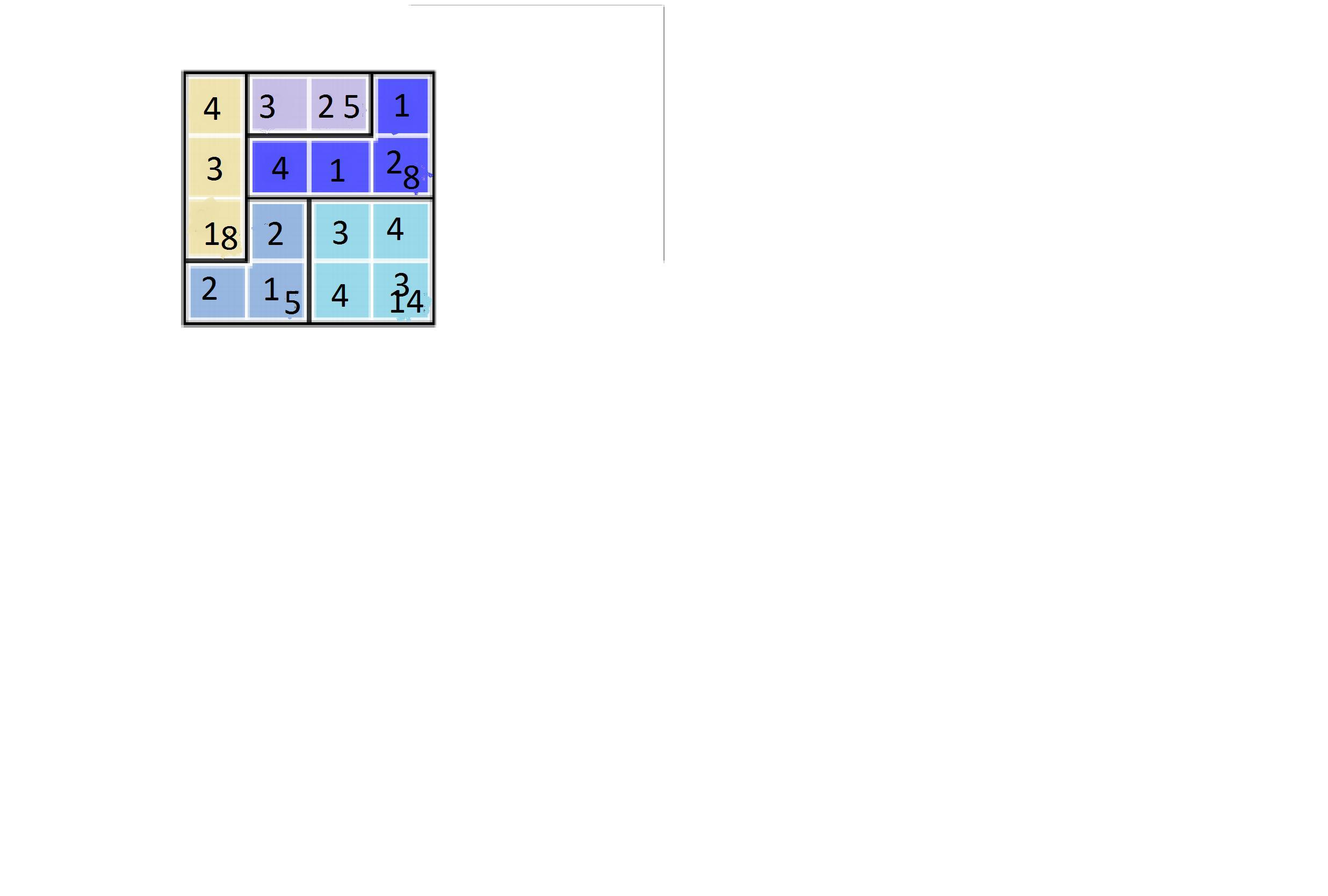 В одной из разновидностей классической головоломки ,, судоку ", которая называется ,,сумдоку" , вместо некоторых цифр даются суммы некоторых групп клеток. Например , в сумдоку , показанном справа , нужно расставить в таблице числа от 1 до 4 так, чтобы :