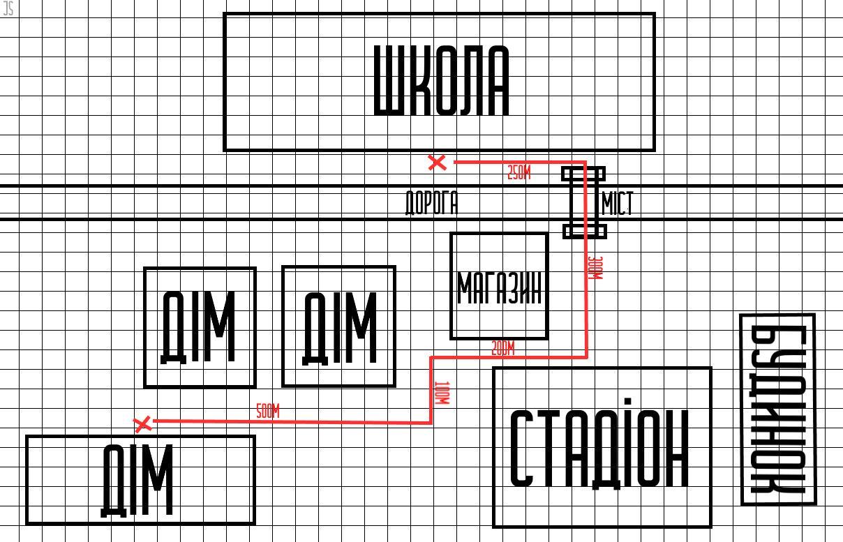 Ps: Це творче завдання, тому я накреслив можливий маршрут від дому до школи.