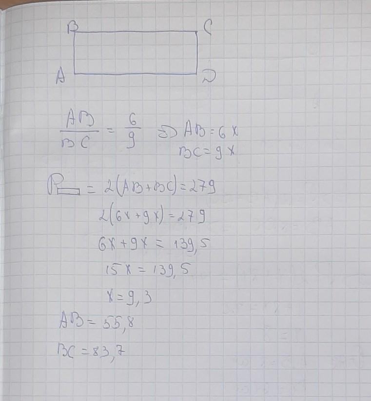 Сторони прямокутника співвідносяться, як 9:6, периметр дорівнює 279 см. Обчисли довжини сторін прямокутника.