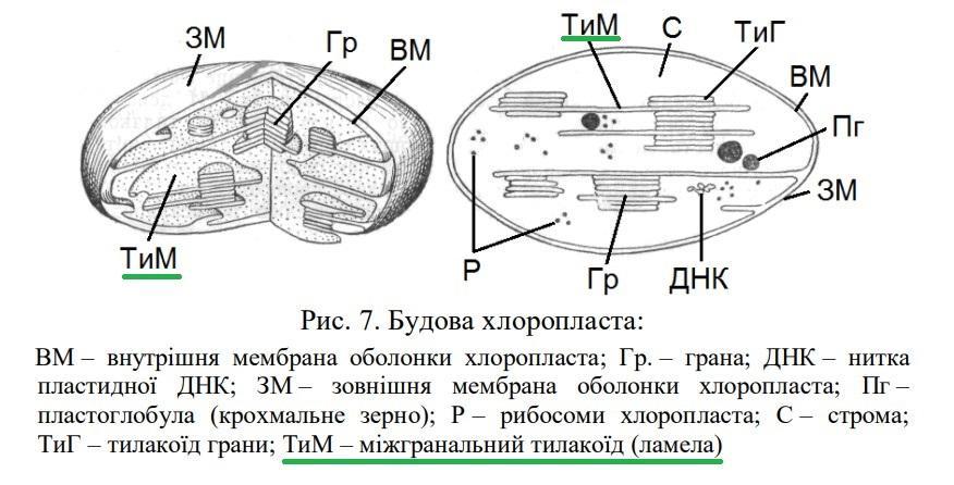 Тилакоїди => мережа взаємопов’язаних між собою плоских пухирців у внутрішній мембрані хлоропластів