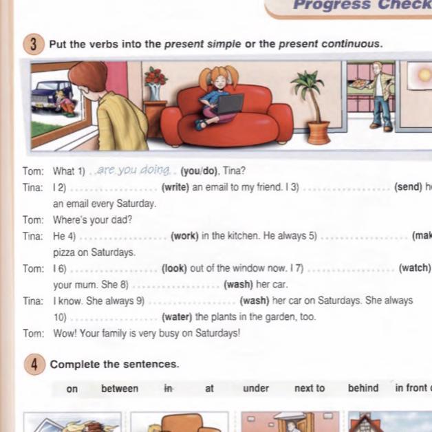 put the verbs into the present simple or present continuous Tom: what are you doing tina Tina