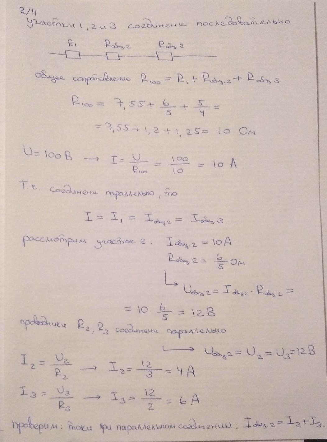 составляет 100 B, R1 = 7,55 Ом, R2 = 3 Ом,