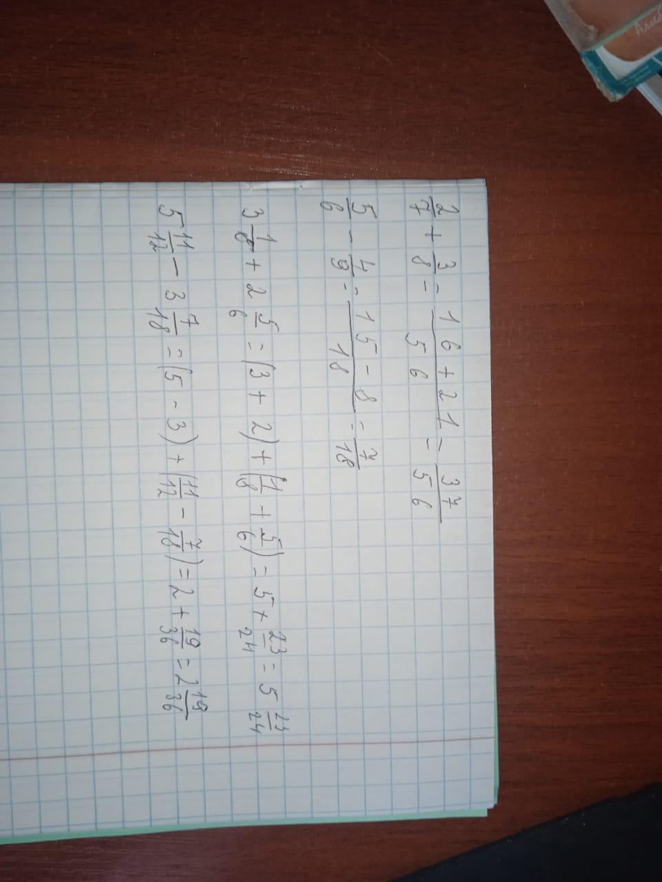 2/7+3/8 = 16\56 + 21\56 = 37\56