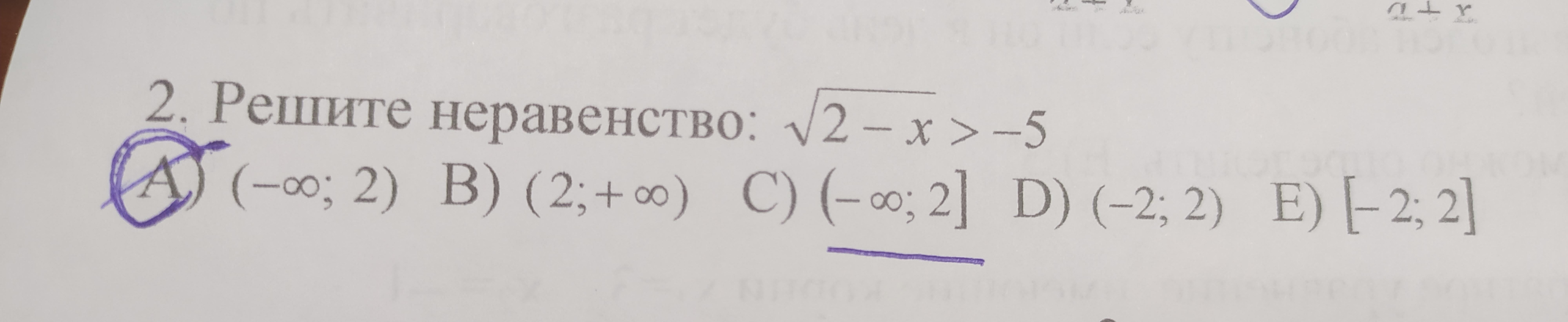 х∈(-∞; 2]