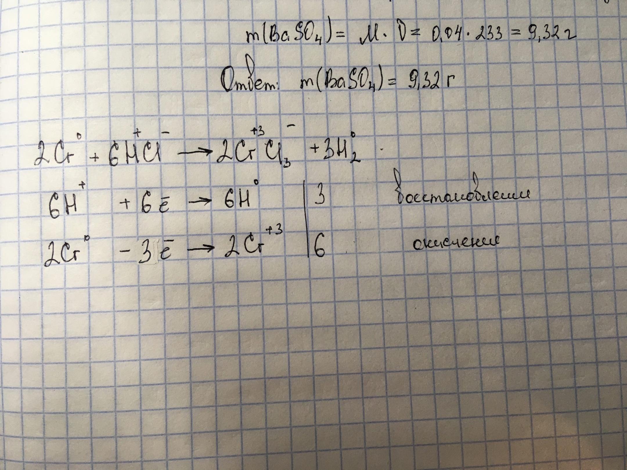 Дана схема реакции: Cr + HCl → CrCl3 + H2.