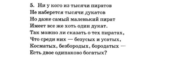 Ответ:, думаю, да, есть. У одного из них самая большая сумма, которая может быть - это 999 дукатов. И самая маленькая сумма у кого-то - это 1 дукат. Например, у первого - 1, у второго - 2, и т. д. У 999-го - их 999. У тысячного должно быть или 1000, или совсем ничего. А это противоречит условиям задачки. Выходит, у двоих пиратов имеется одинаковая сумма:р