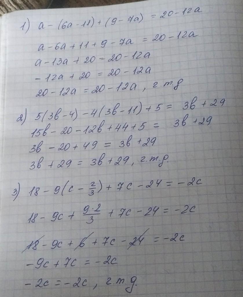 1) а-(6а-11)+(9-7а)равно20-12а
