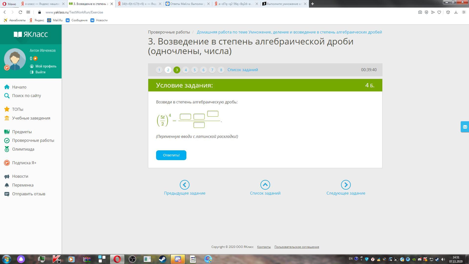 а в задании в как отвечать?