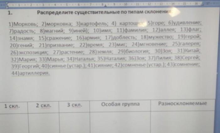 1 скл: морковка; картошка; фамилия; аллея; армия; галерея; экспозиция; земля; биология; Зоя; Мария; Марья; Наталия; Лилия; артиллерия.