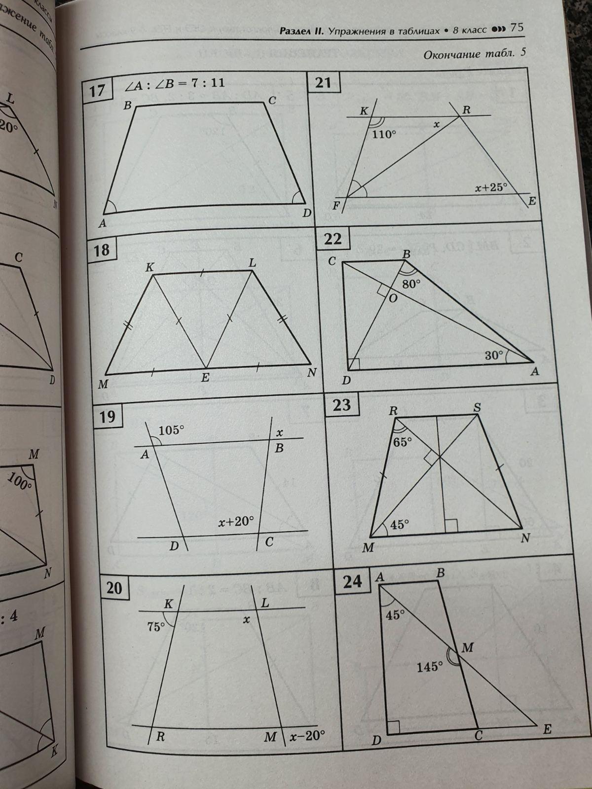 Я так понимаю, нужно было найти углы. Задачи 17-20