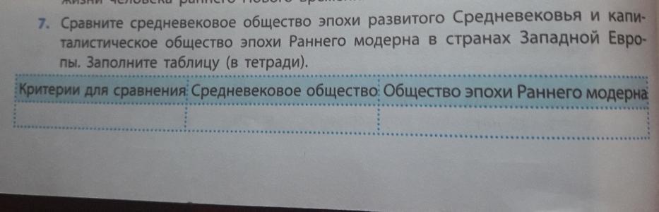 сравните средневековое общество эпохи развитого Средневековья и капиталистического общества эпохи Раннего модерна в странах Западной Европы. По таблице на фото: