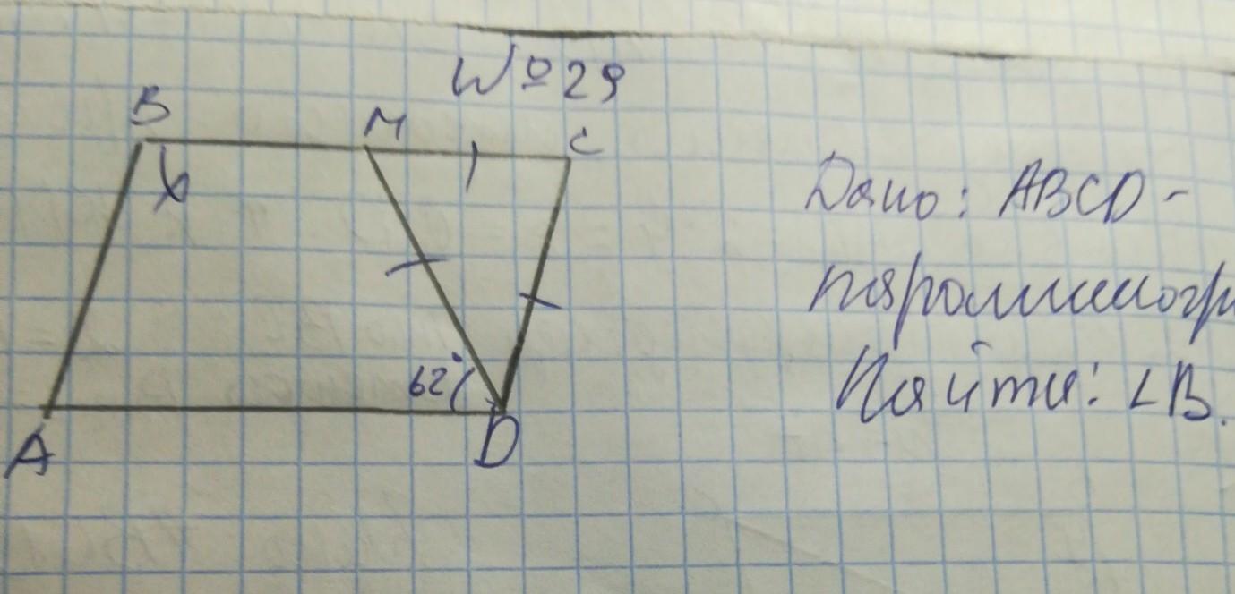 3)∠D=∠B=122° (По свойству параллелограмма)