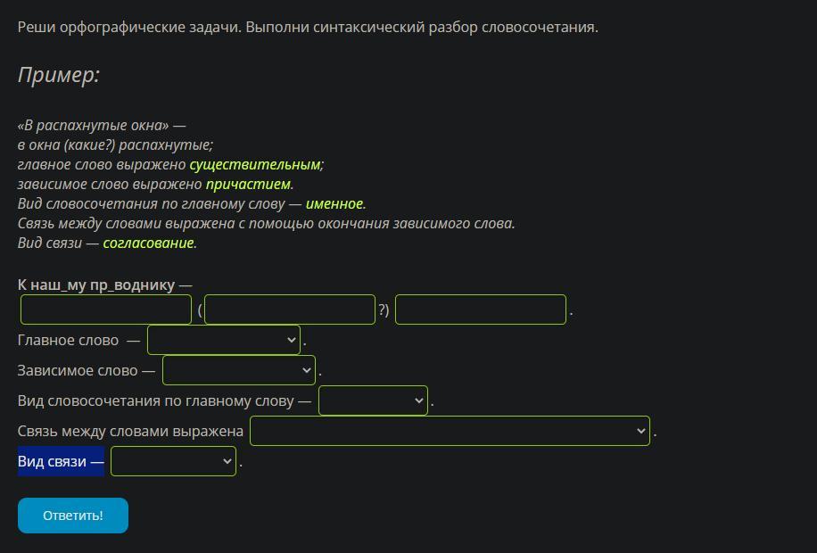 Реши орфографические задачи. Выполни синтаксический разбор словосочетания.
