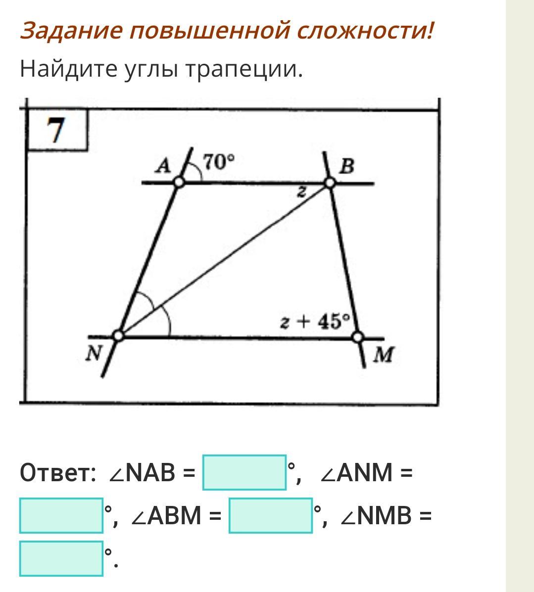 угол NAB=34, ANM=68, ABM=70, NMB=113.