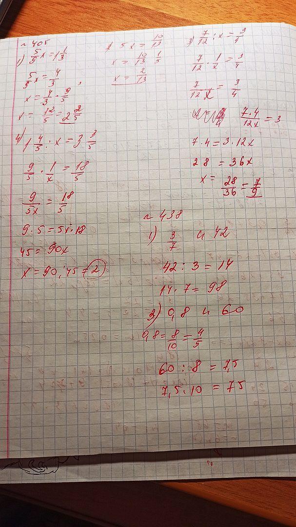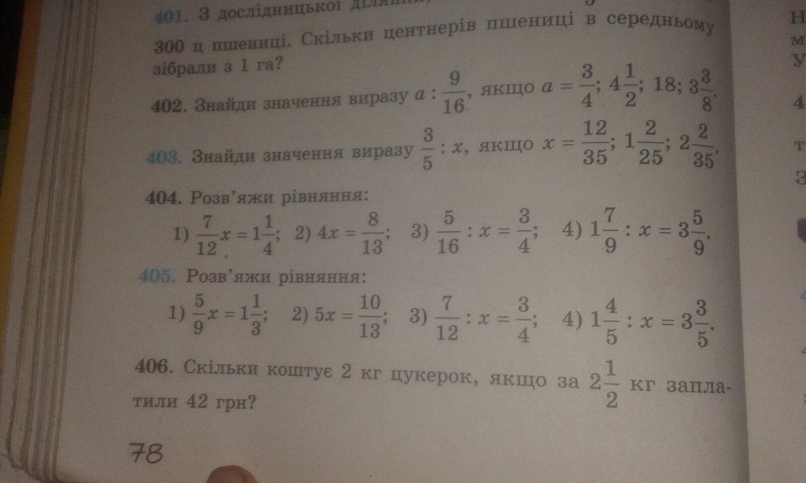 № 405: Ответы: 1) 2,4; 2) 2/13≈0,15; 3) 7/9≈0,78; 4) 0,5.