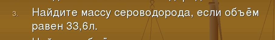 n(H2S) = V(H2S) / Vm = 33,6 л / 22,4 л/моль =1,5 моль