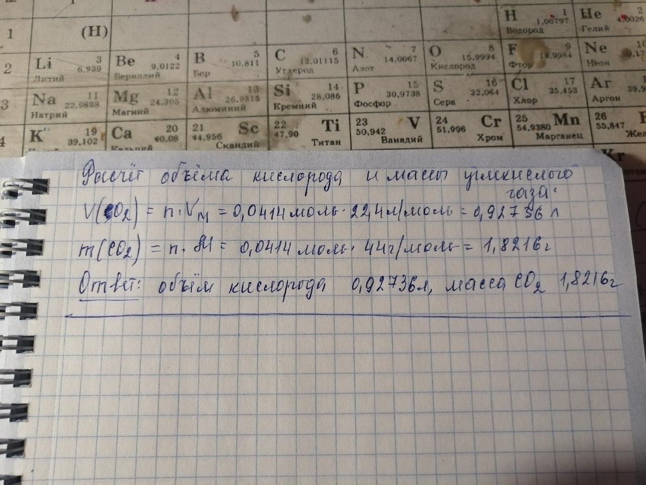 Какой объём кислорода (н.у.) выделится в атмосферу при образовании в зелёном растении 3,72 г. глюкозы? Какая масса углекислого газа при этом поглощается?