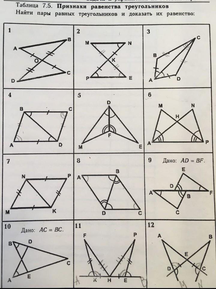 Первый признак равенства треугольников: если две стороны и угол между ними одного треугольника, равны двум сторонам и углу между ними другого треугольника,то эти треугольники равны.