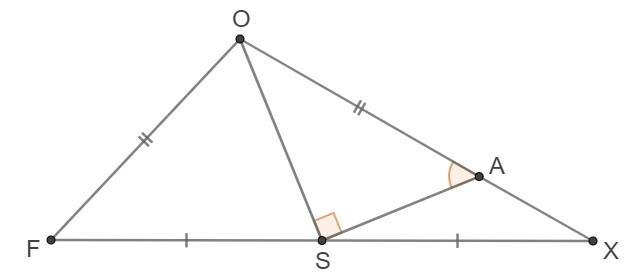 В треугольнике FOX проведена медиана OS. На стороне OX выбрана точка A так, что угол OSA — прямой. При этом отрезок OA равен стороне ОF. Найдите сумму углов OFX и OXF, если ∠OAS=50∘. Ответ дайте в градусах.