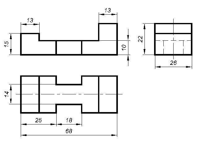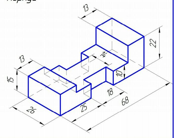 Прошу помогите построить главный вид, вид сверху и вид слева