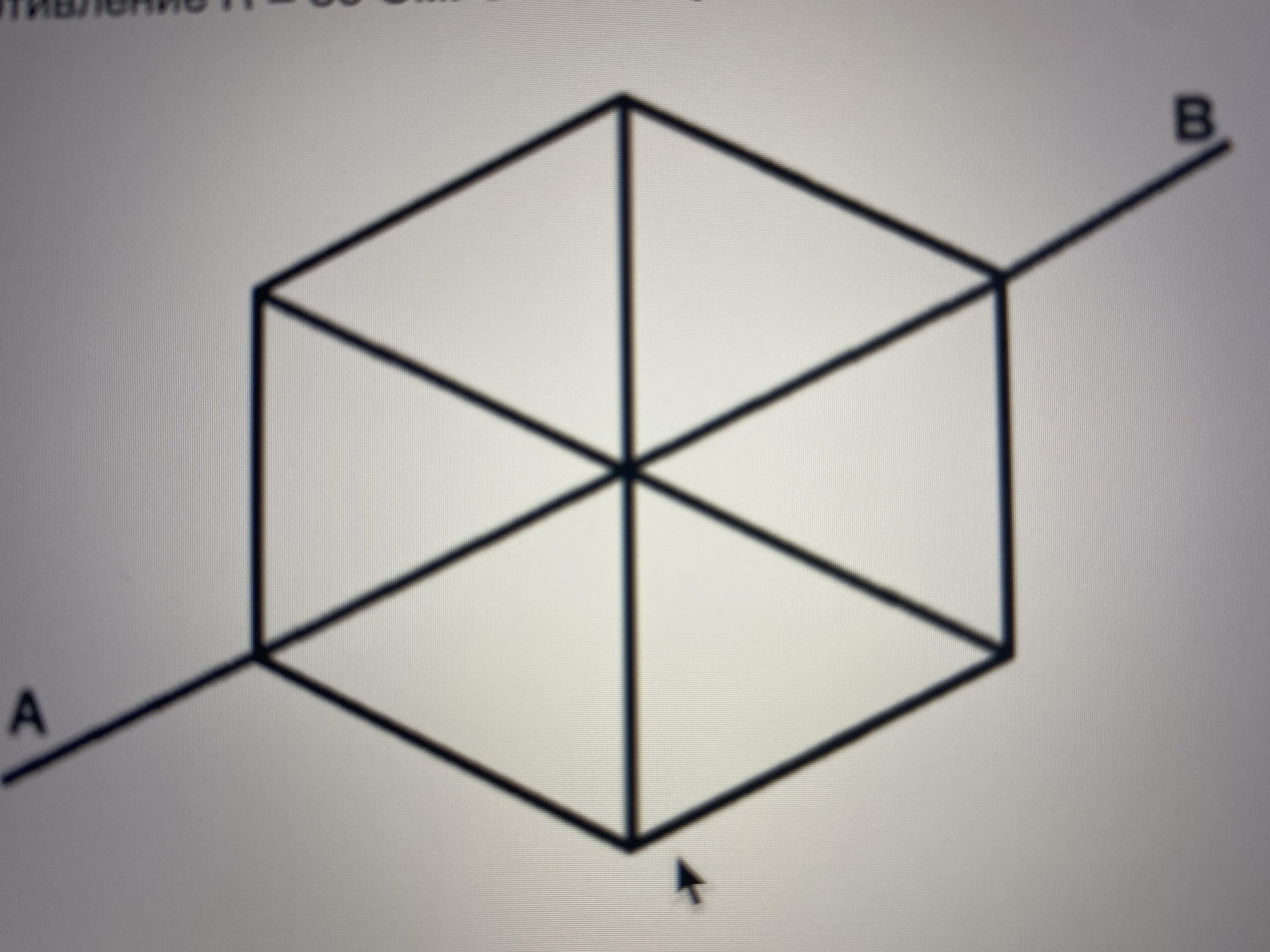 Найдите сопротивление между точками А и В в данной схеме. Каждый отрезок шестиугольника имеет сопротивление R=30 Ом. Ответ выразить в Ом.