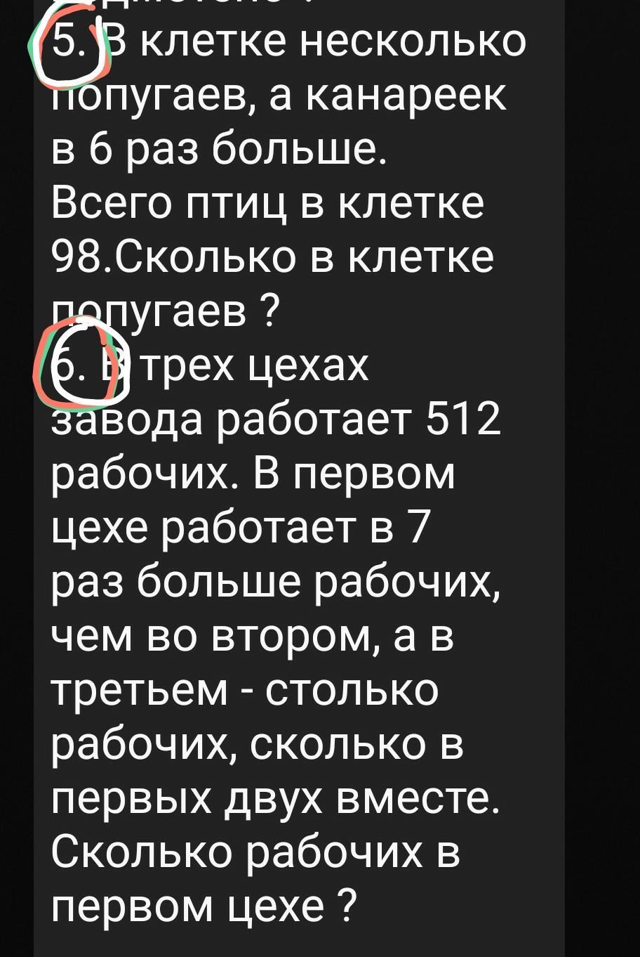 Пусть попугаев будет х, тогда канареек 6х. Всего птиц 98.