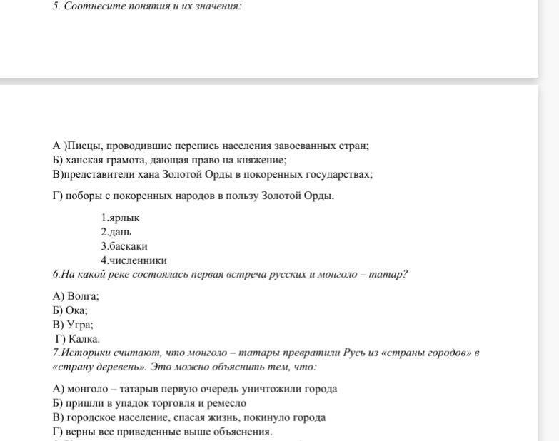 5. А - численник,Б - ярлык, В - баскаки, Г - дань