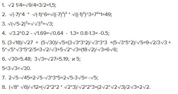 4. √3.2*0.2 - √1.69=√0.64 - 1.3= 0.8-1.3= -0.5;