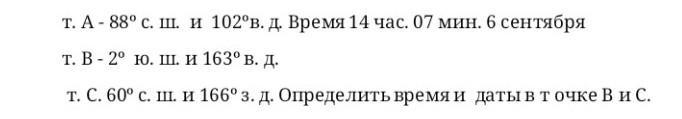 Если в точке А 14 ч 07 мин 6 сентября ( а), то в точке В будет:18 ч 11 мин. 6 сентября.
