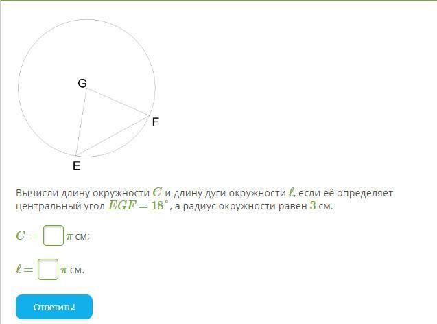 l=πRn/180=π*3*18/180=0,3π см.длина дуги окружности