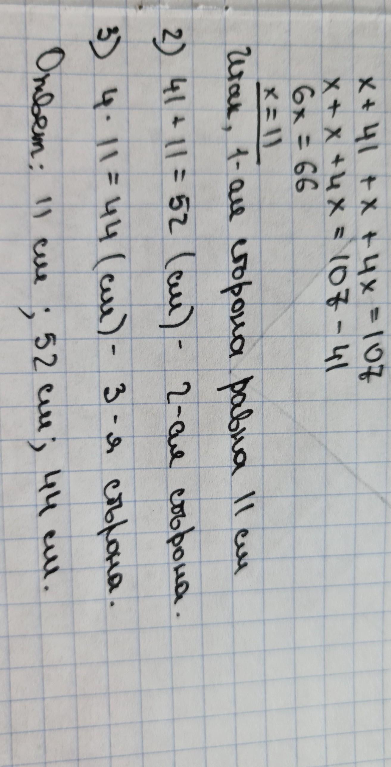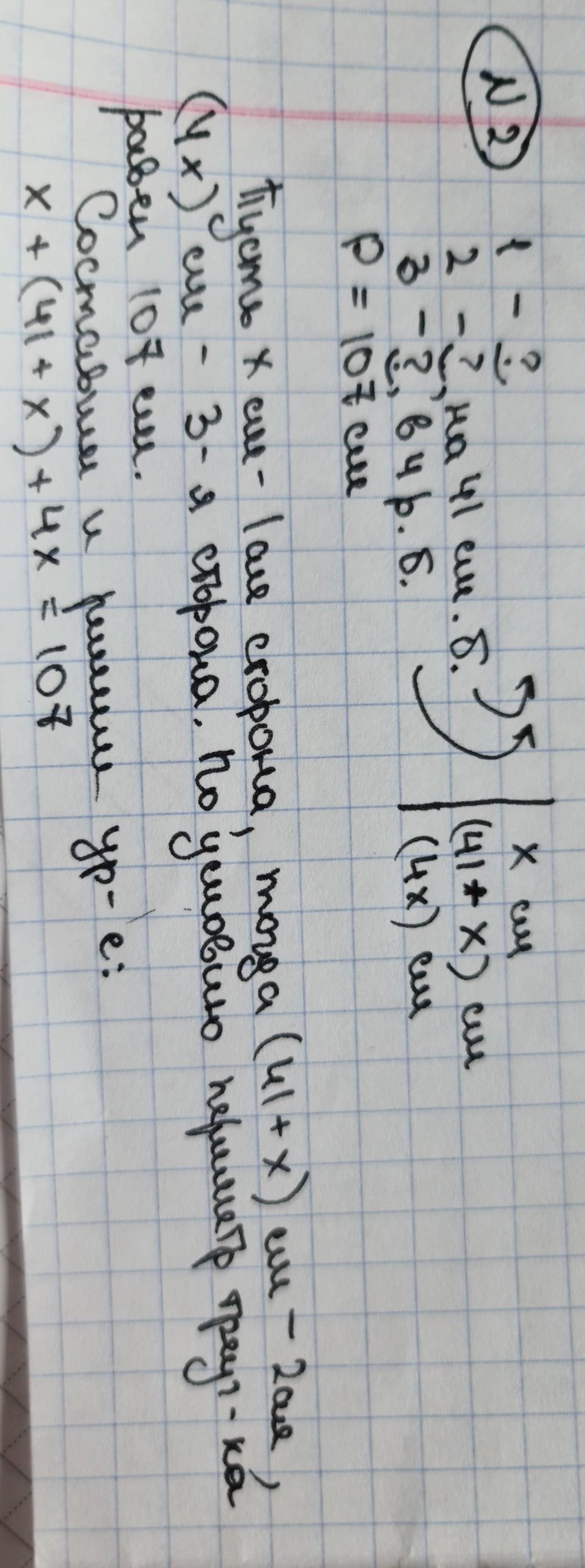 2) Одна из сторон треугольника на 41 см меньше второй и в четыре раза меньше третьей. Найдите стороны треугольника, если его периметр равен 107 см.