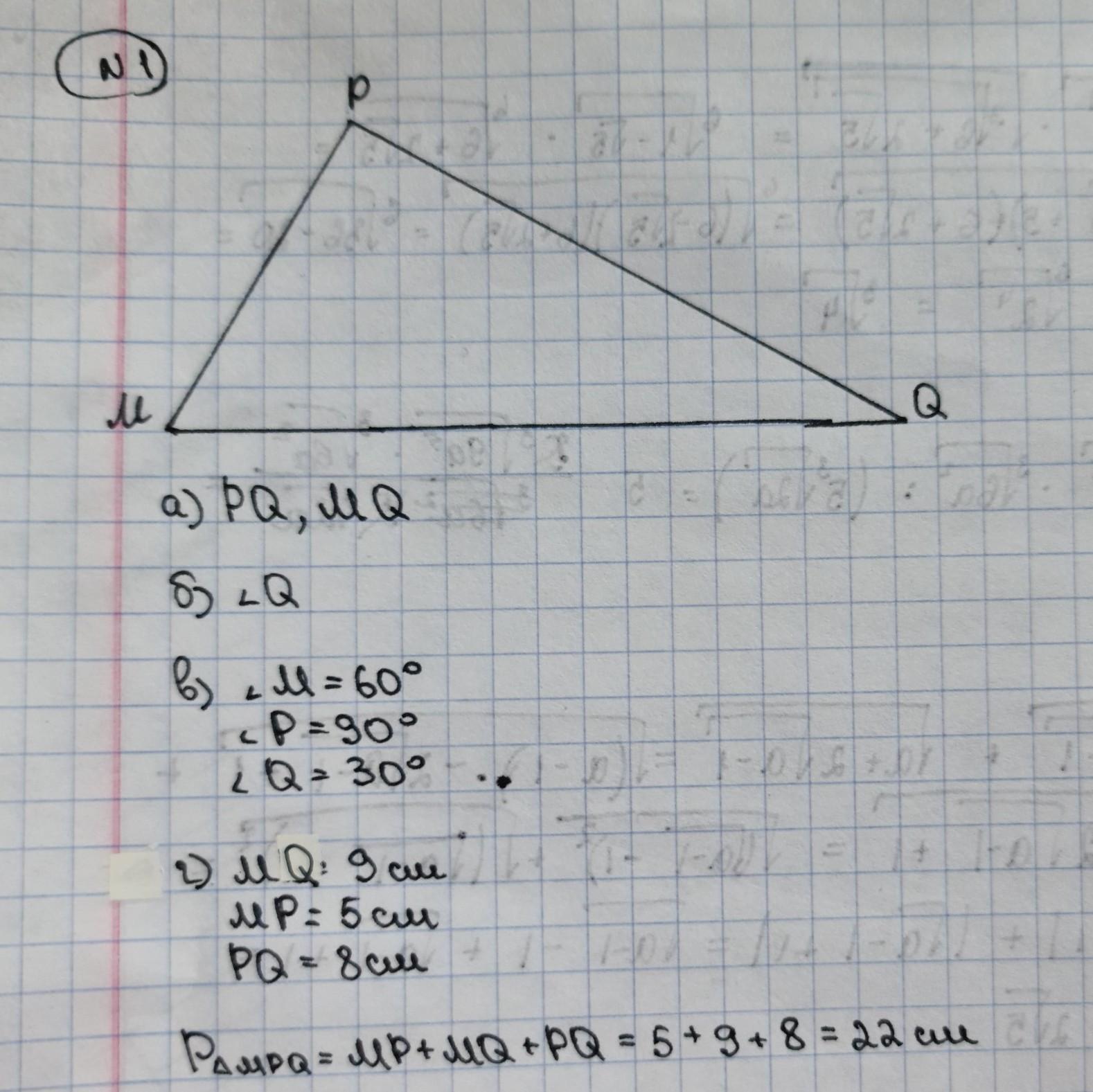 1) Начертите произвольный треугольник. Обозначьте его вершины буквами M, P, Q. Укажите:
