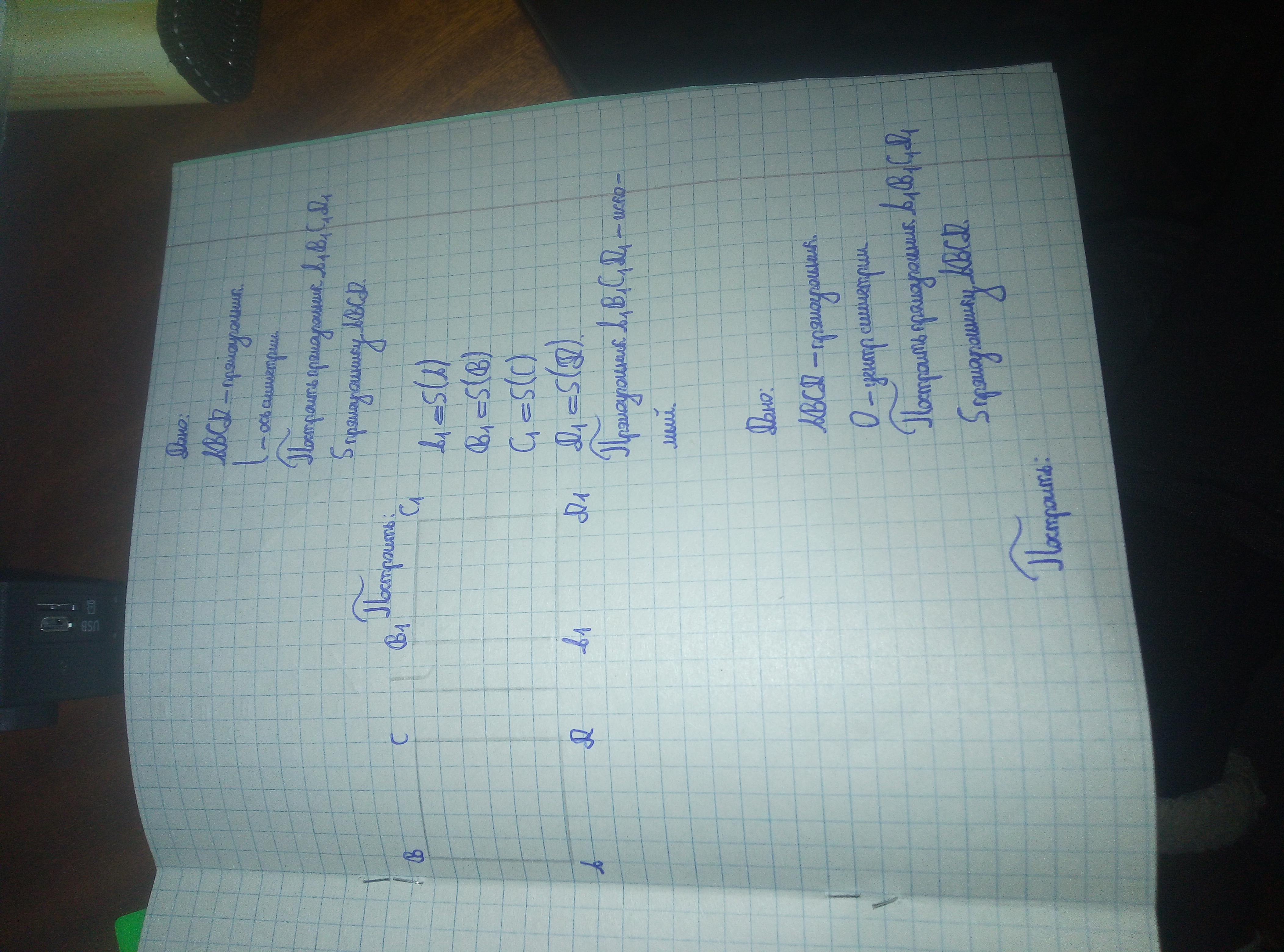 Верно ли построил осевую и центральную симметрии? (прямоугольника ABCD)
