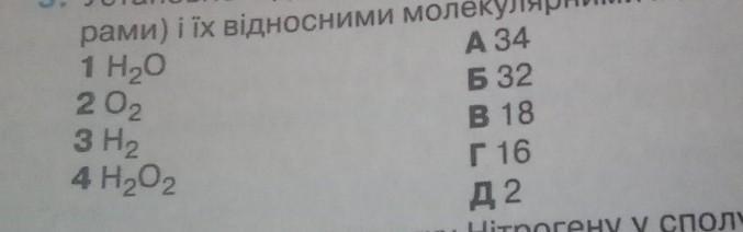 установіть відповідність між хімічними формулами речовин і їх відносними молекулярними массами