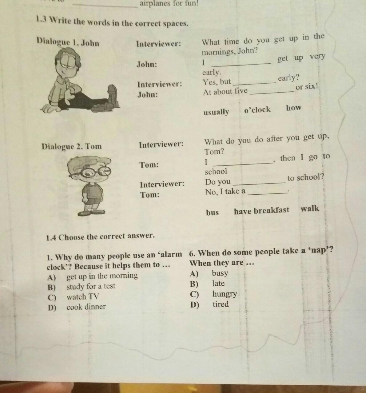 Tom: I have breakfast ,then I go to school