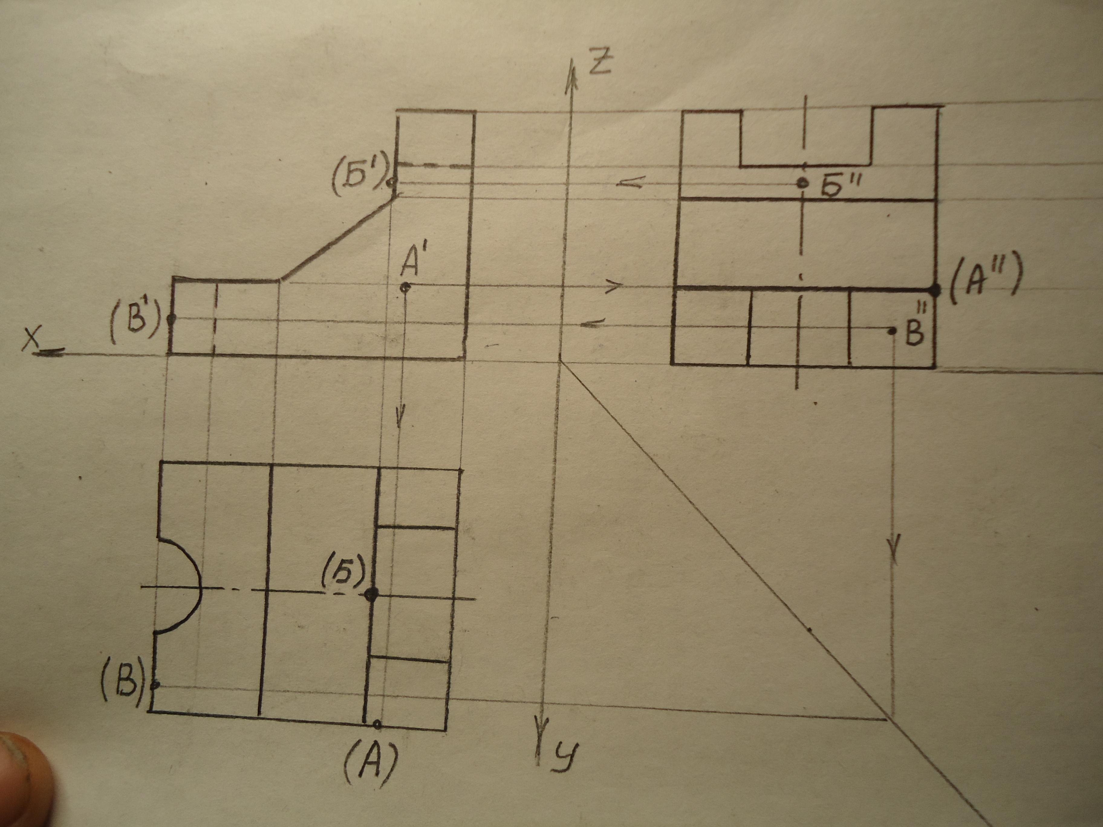 Ещё для меня было странным, что точки на чертеже записаны заглавными буквами. Обычно в пространстве точки обозначены заглавными буквами, а на чертеже пишут строчные буквы.