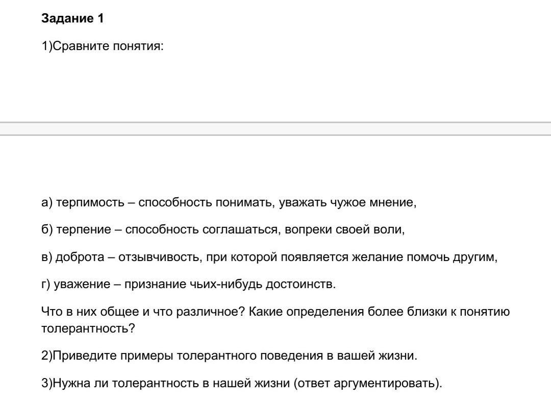 2) Пример толерантности: "толерантность в отношении людей, которые отличаются от нас своими убеждениями и привычками".