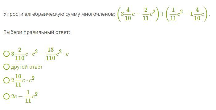 После раскрытия скобок и сокращения останется 2c-(1/11)*c*c, то есть ПОСЛЕДНИЙ ответ правильный.