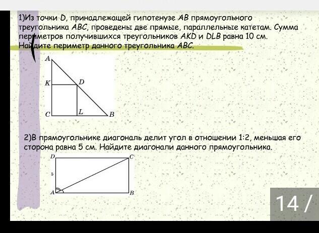 Получаем Р AKD + P BDL=AK+CL+AD + DB+BL+KC=10;