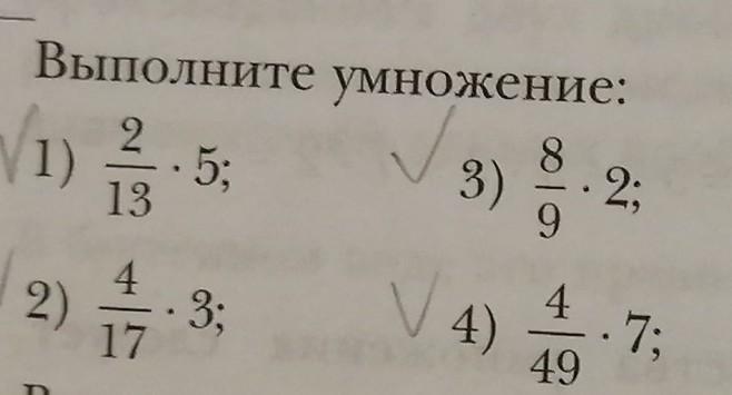 4) 4/49 * 7 = 4/7 Сокращается 49 и 7.