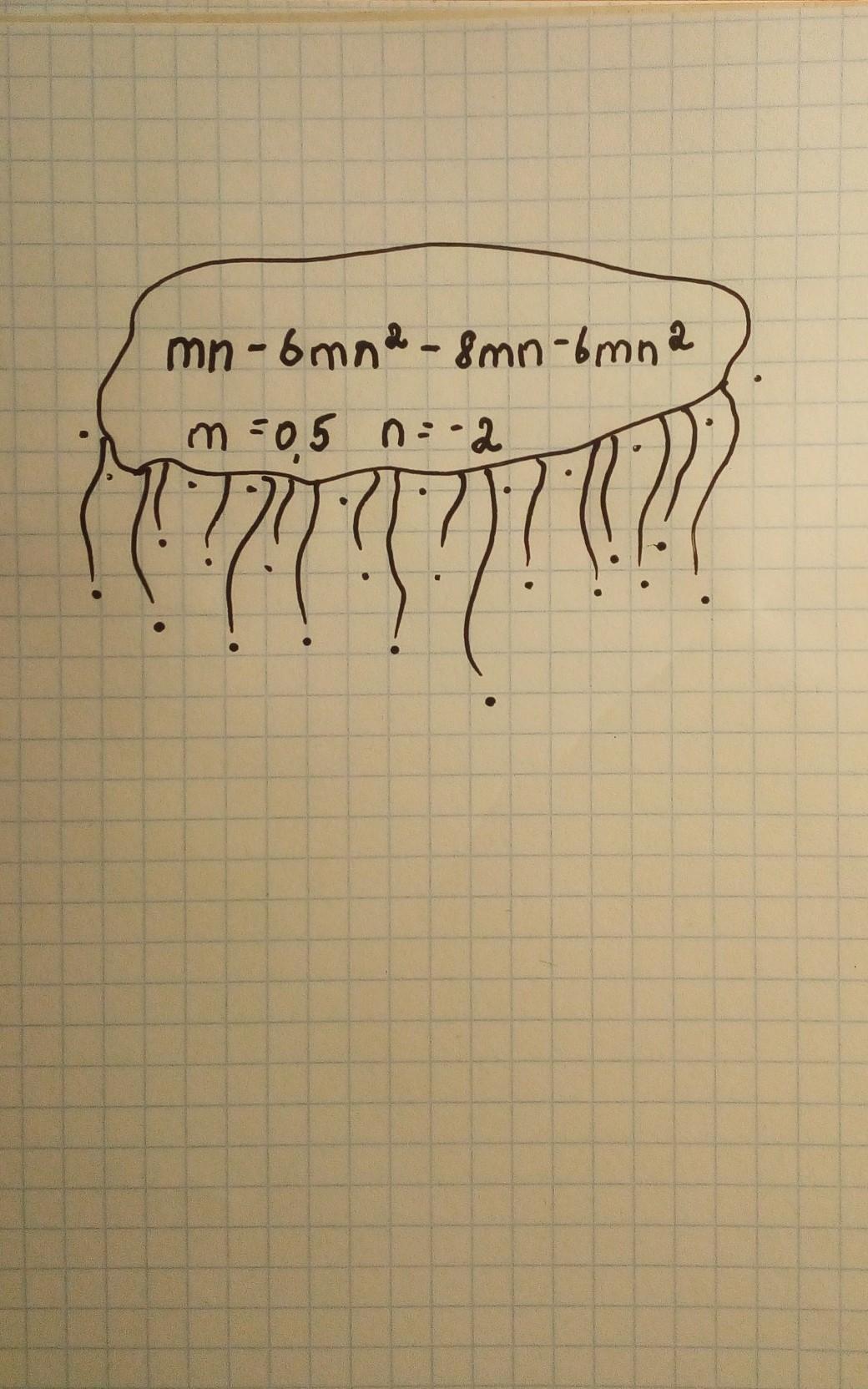 допущена ошибка. правильное решение mn-6mn^2-8 mn-6mn^2=-7mn-12mn^2=-7(0,5×(-0,2))-12 (0,5×0,04)=-0,7-0,24=0,94